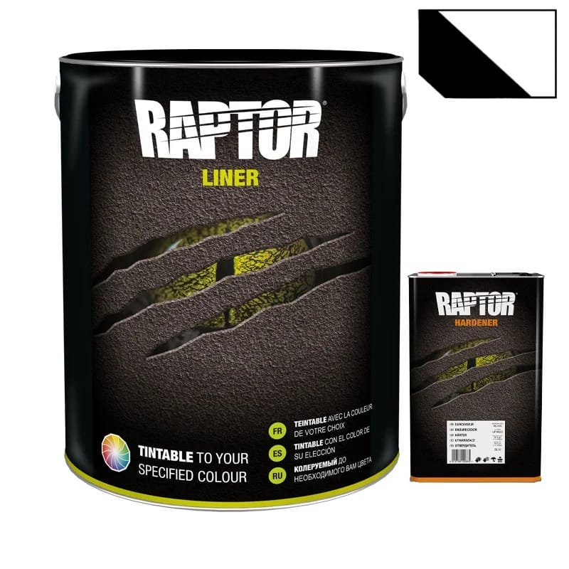 Raptor este disponibilă în varianta de culoare neagră sau varianta alb transparență care este pigmentabilă. Varianta pigmentabilă poate fi nuanțată în orice culoare, prin adăugarea a 100 ml vopsea auto metalizată sau nemetalizată la fiecare litru de vopsea raptor. Vopseaua Raptor poate fi aplicată cu textură mare sau măruntă, dar poate fi aplicată și netedă ca o vopsea normală.